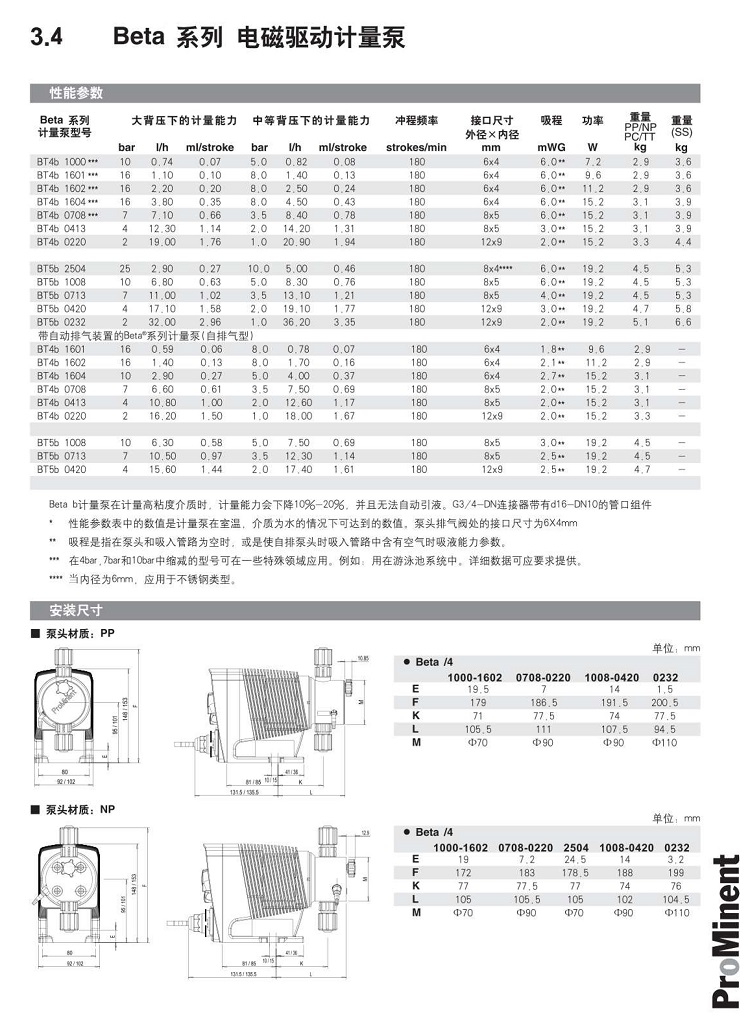Beta b計量泵在計量高粘度介質時,計量能力會下降10-20%,并且無法自動引液。G3/4-DN連接器帶有d16-DN10的管口組件。