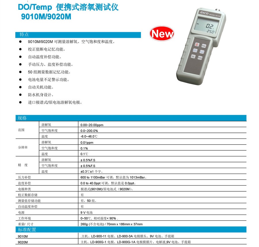 9010M為極譜式溶氧量檢測儀,適用于大眾用途,使用簡易,可存取高達50筆數據資料。