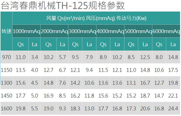 TH型羅茨鼓風機產品規格: