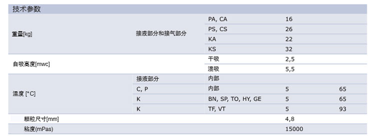 自吸高度dry 3,7 m WC; wet 6,4 m WC