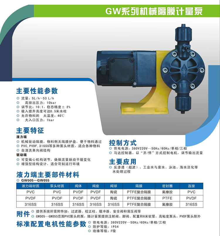 小型加藥泵GW025 機械驅動隔膜計量泵 24L 7bar PVC 水處理往復泵