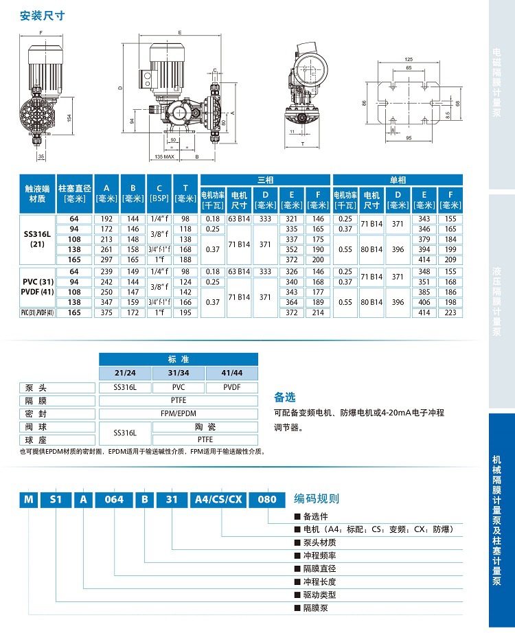 ( SEKO賽高) 機(jī)械隔膜計(jì)量泵MS1系列PVC泵頭耐酸堿耐腐蝕泵泵頭可選