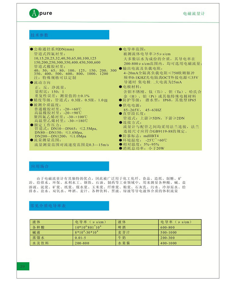 APURE智能電磁流量計選型手冊
