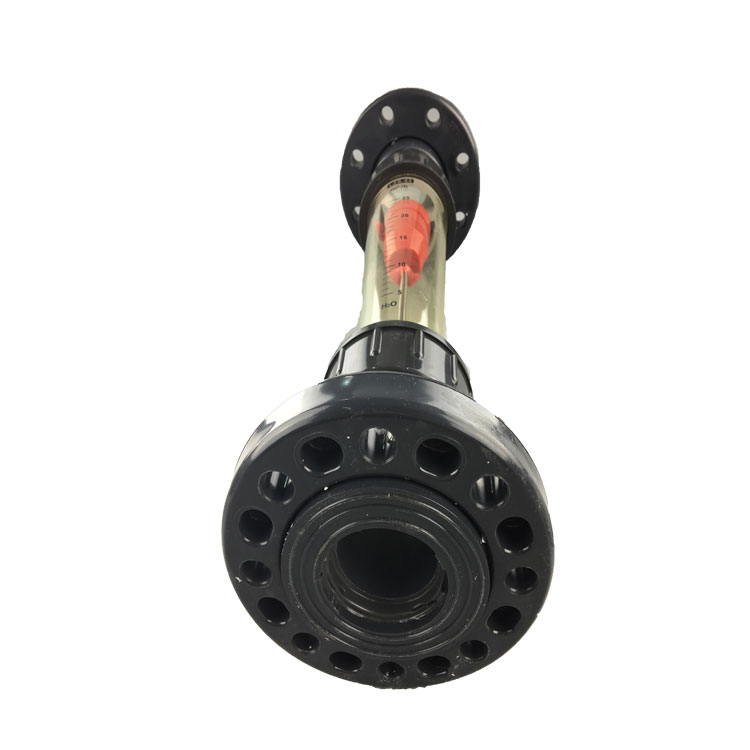 塑料流量計結構如圖:主要由小端向下,大端向上垂直安裝的透明塑料錐管和在錐管內可上下移動的浮子作為測量元件,與螺母、接管、止檔及“O”型圈等構成。當流體在錐管內自下而上流動時,在浮子上下產生壓差,使浮子上升,當此壓差與浮子重力、浮力及粘性力處于力平衡時,浮子處于靜止位置,當流量變化時,流經錐管與浮子間環隙處流體的流速變化,浮子上下的壓差相應變化,浮子作上下移動,因此浮子靜止位置的高度可作為流量的量度。