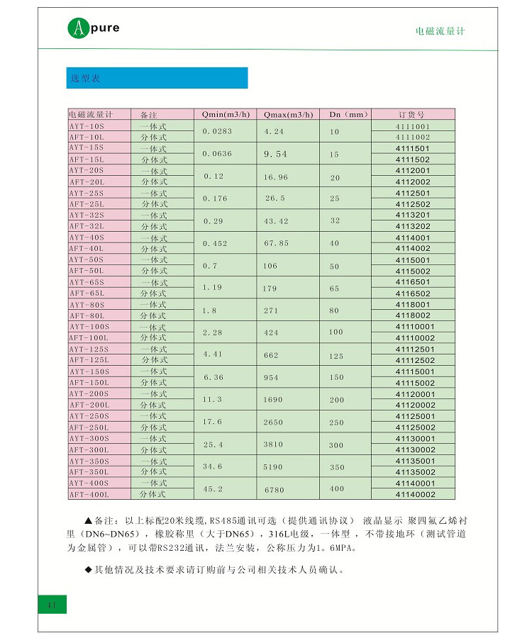 APURE智能電磁流量計選型手冊