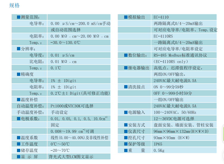 智能型電導(dǎo)率變送器EC-4110RS