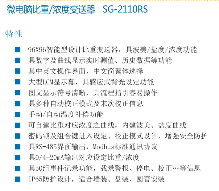 微電腦比重/濃度變送器 SG-2110RS