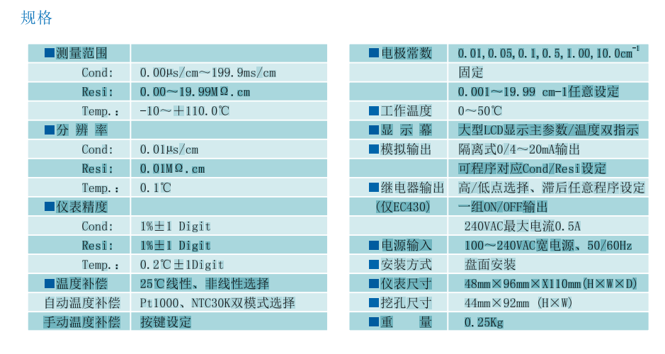 型號:在線電阻率變送器 EC-430