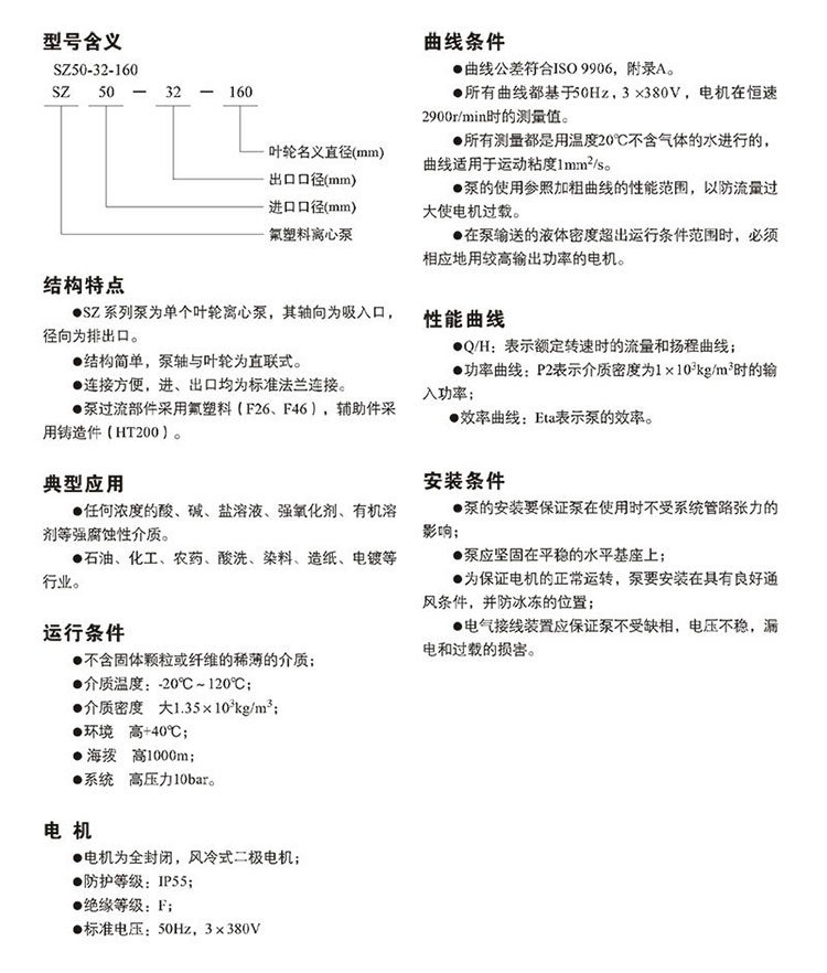 南方SZ單級臥式氟塑料離心泵,配加長軸電機,軸向入口和徑向出口,電機軸與葉輪為直聯式,過流部件均采用氟塑料(F26、F46)。