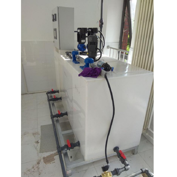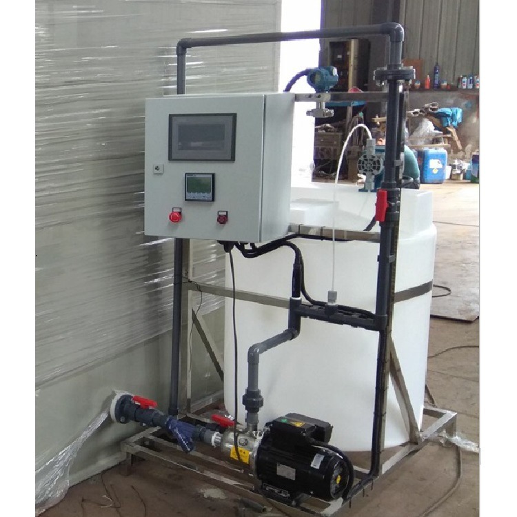 加藥裝置通過不同的工藝設(shè)計,配置各類固體和液體的化學(xué)藥品的溶液,再用計量泵準(zhǔn)確投加,以達到各種設(shè)計要求。如除垢、除氧、混凝、加酸、加堿等。
