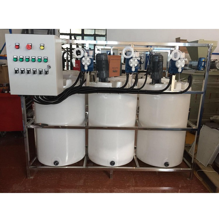 示蹤劑加藥裝置由示蹤劑儀表、PH儀表、0RP儀表、電導率儀表、控制系統、無線遠傳系統等部分組成。其工作原理是由示蹤劑儀表檢測循環水系統中藥劑的濃度,進行PID運算,然后自控制系統啟動或關閉加藥泵往循環水系統添加藥劑。其功能是使藥劑穩定在一定的濃度范圍,達到保護管道不會結垢或腐蝕的趨勢。循環水系統進行排污或補水時,只要藥劑濃度滿足設定值,加藥泵依然不向系統中投加藥劑。從而節約客戶使用藥劑的成本。