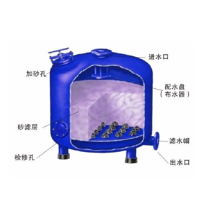 7.采用精制優(yōu)選石英砂或石榴石作為過濾介質(zhì)。根據(jù)水質(zhì)情況進行選擇,濾料粒徑小可0.16mm的均質(zhì)濾料。