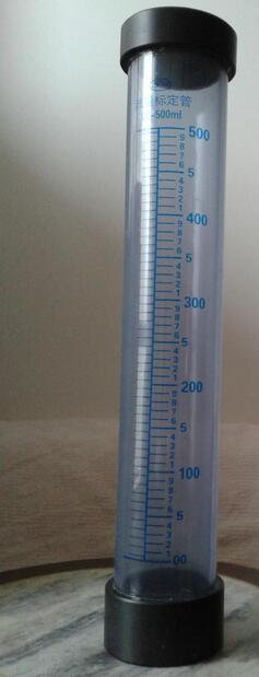 流量標定柱的選型是根據泵的使用流量和標定時間要求決定的。比如,泵的流量是60L/h,客戶需要標定0.5-1min的流量,那么每分鐘的計算流量應該是60L÷60=1L,那么可以選擇使用容積為1L的標定柱。