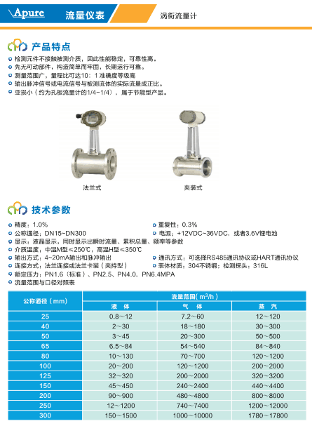 APURE愛普爾APT-32夾持式渦街流量計一體式4-20ma現場顯示流量計