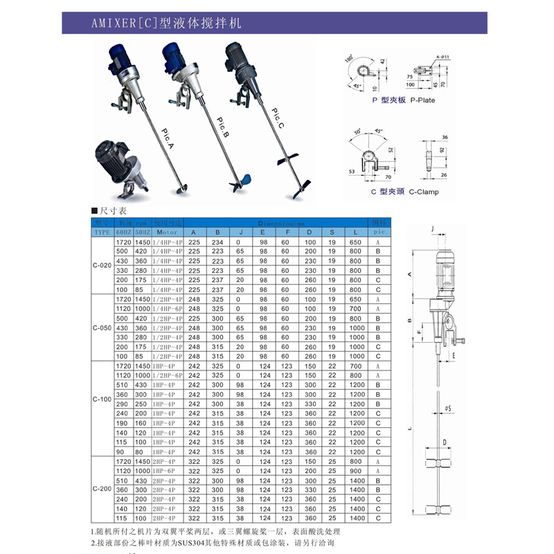 [不銹鋼攪拌機]amixer愛米克斯C系列可移動式立式加藥液體攪拌機