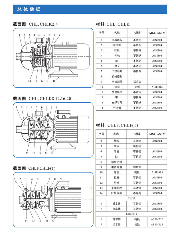 南方離心泵CHL2系列型號參數如下: