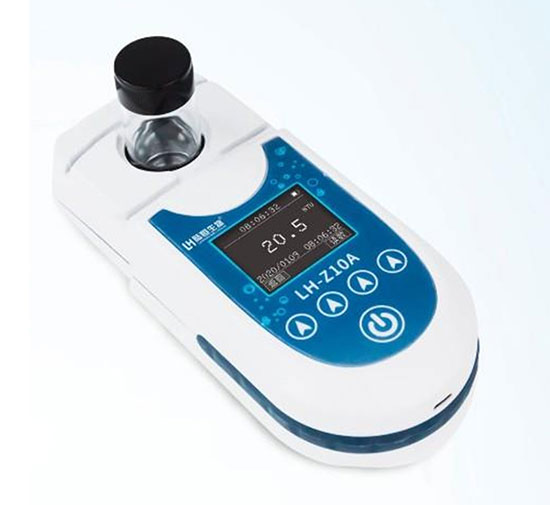 LH-Z10A便攜式濁度計(jì)結(jié)合了散射光法和透射光法,采用了近紅外光源,消除色度干擾,符合IS07027標(biāo)準(zhǔn)。儀器內(nèi)設(shè)置有90°和180°兩個(gè)檢測(cè)器,180°檢測(cè)器接收透射光,90°檢測(cè)器接收散射光,散射光與透射光強(qiáng)度之比與樣品中濁度成正比,可以通過測(cè)定散射光和透射光強(qiáng)度之比從而計(jì)算出樣品的濁度值。