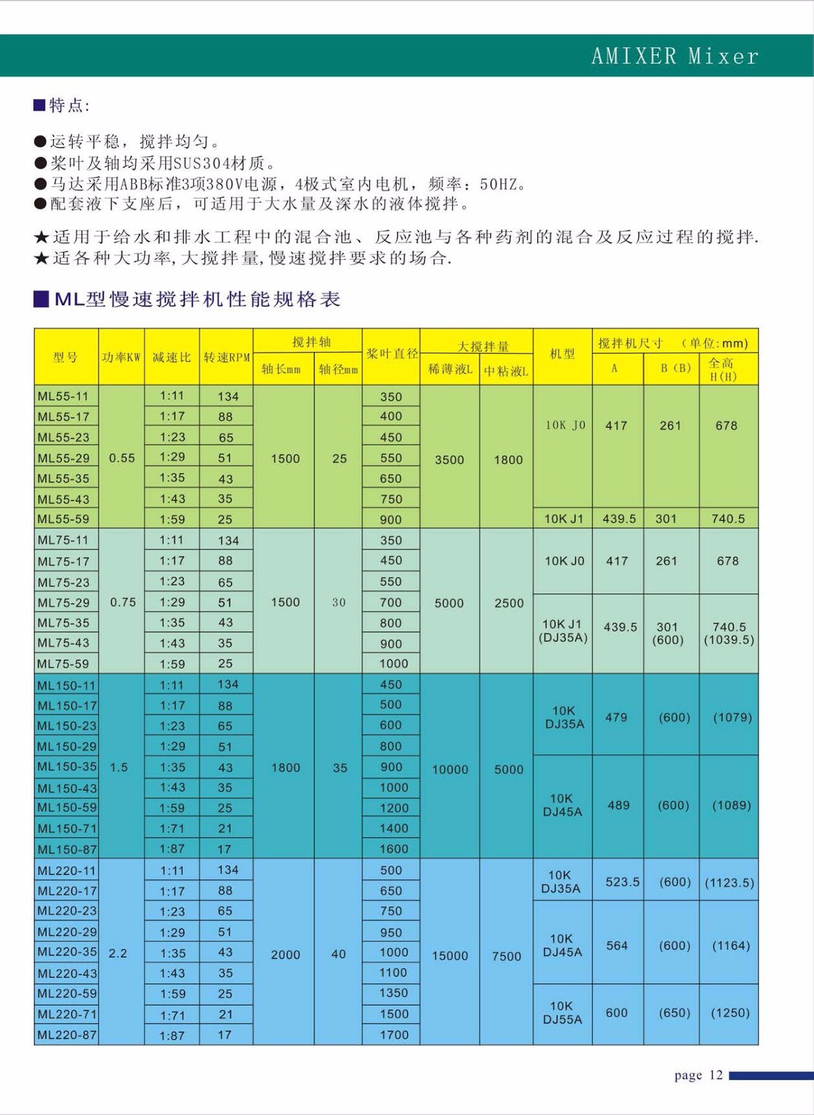 Amixer液體攪拌機 選型樣冊