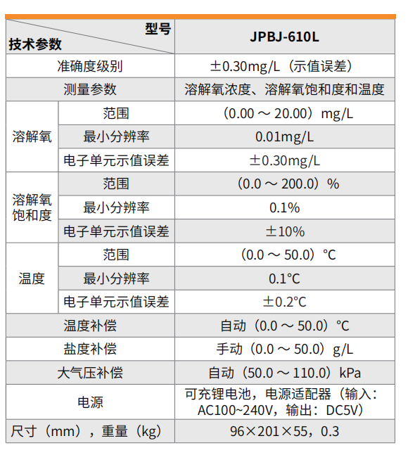 JPBJ-610L 型 便攜式溶解氧測定儀