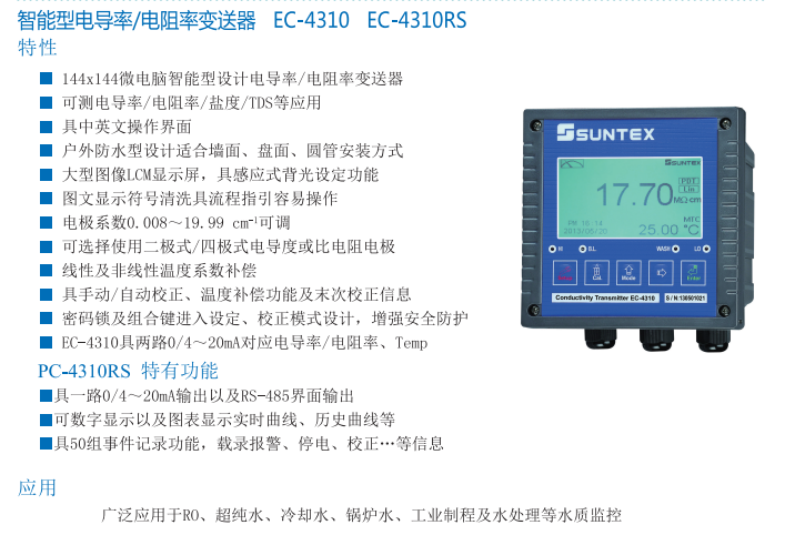 SUNTEX EC-430在線水質監測儀 電導率電阻率控制變送器