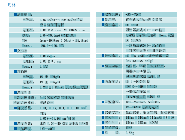 (SUNTEX)智能型電導率儀EC-4310 EC-4310 RS