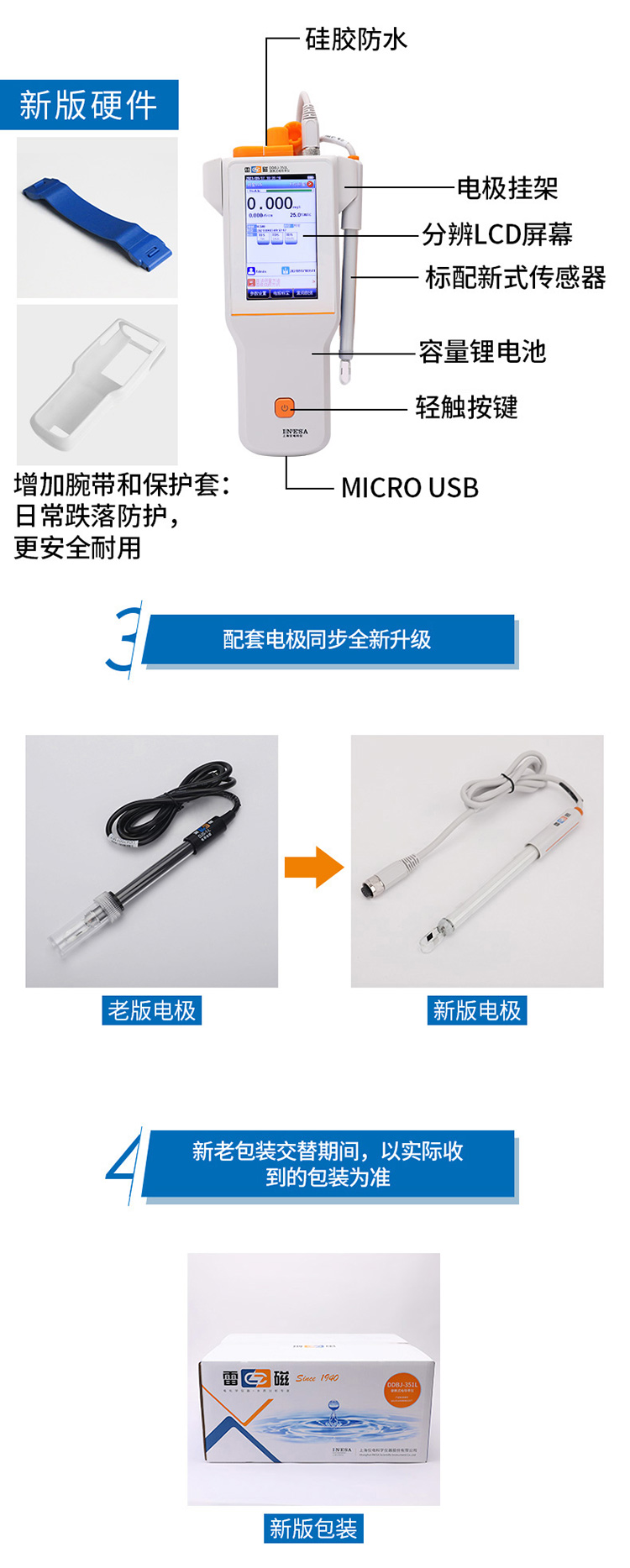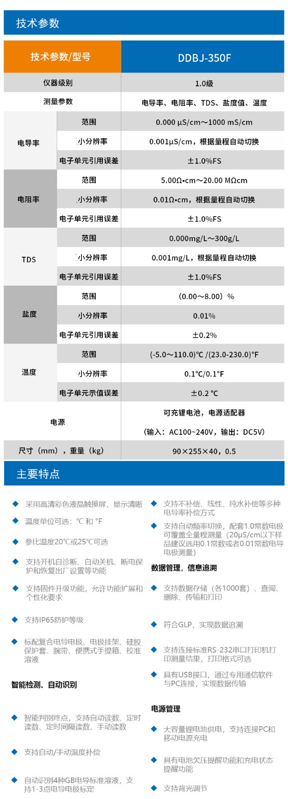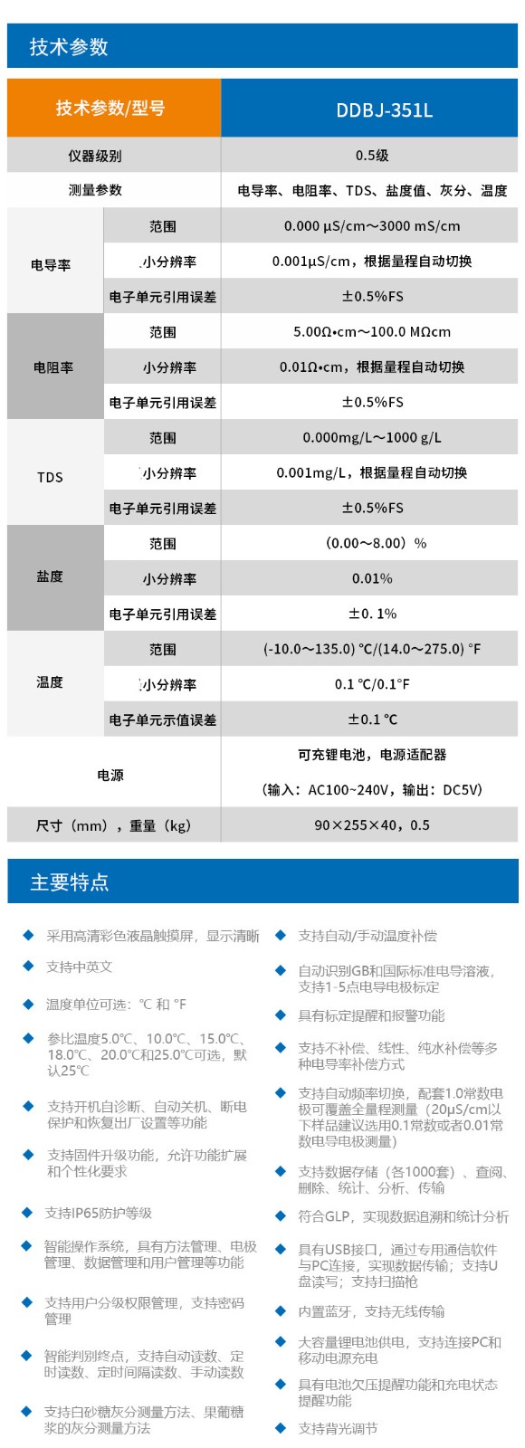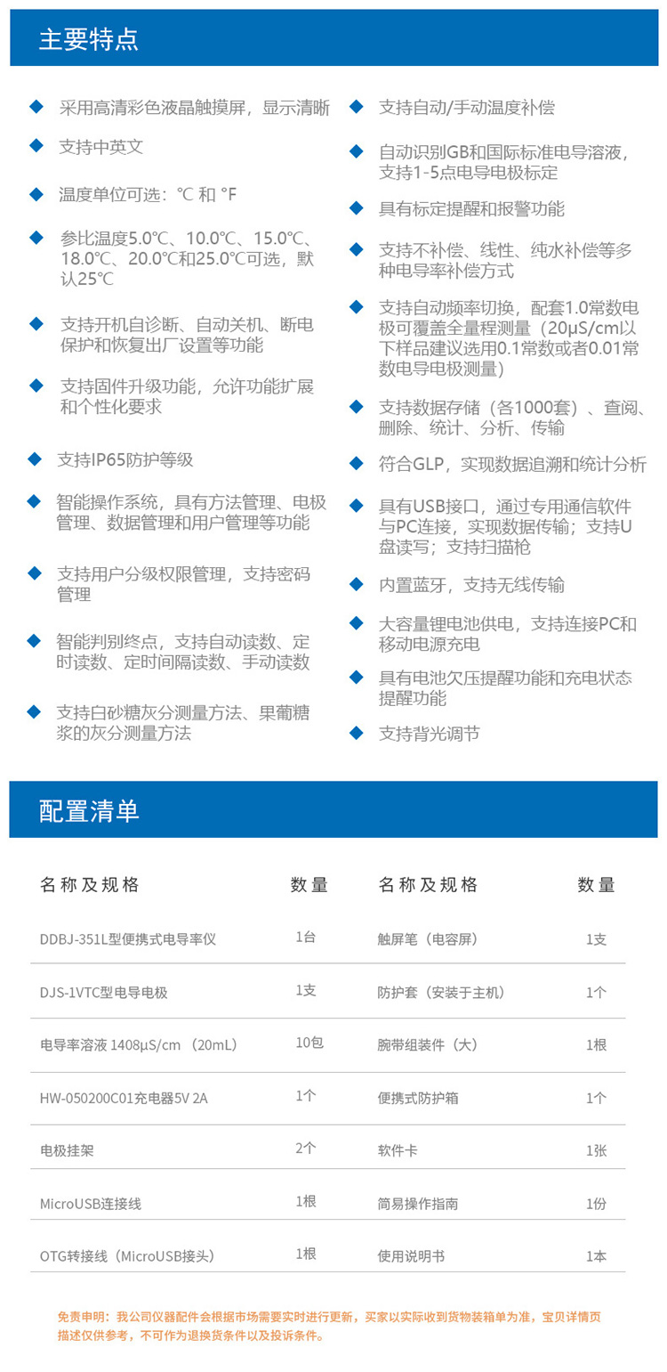雷磁DDBJ系列便攜式電導率儀 350/350F/351L手持電導率測試儀