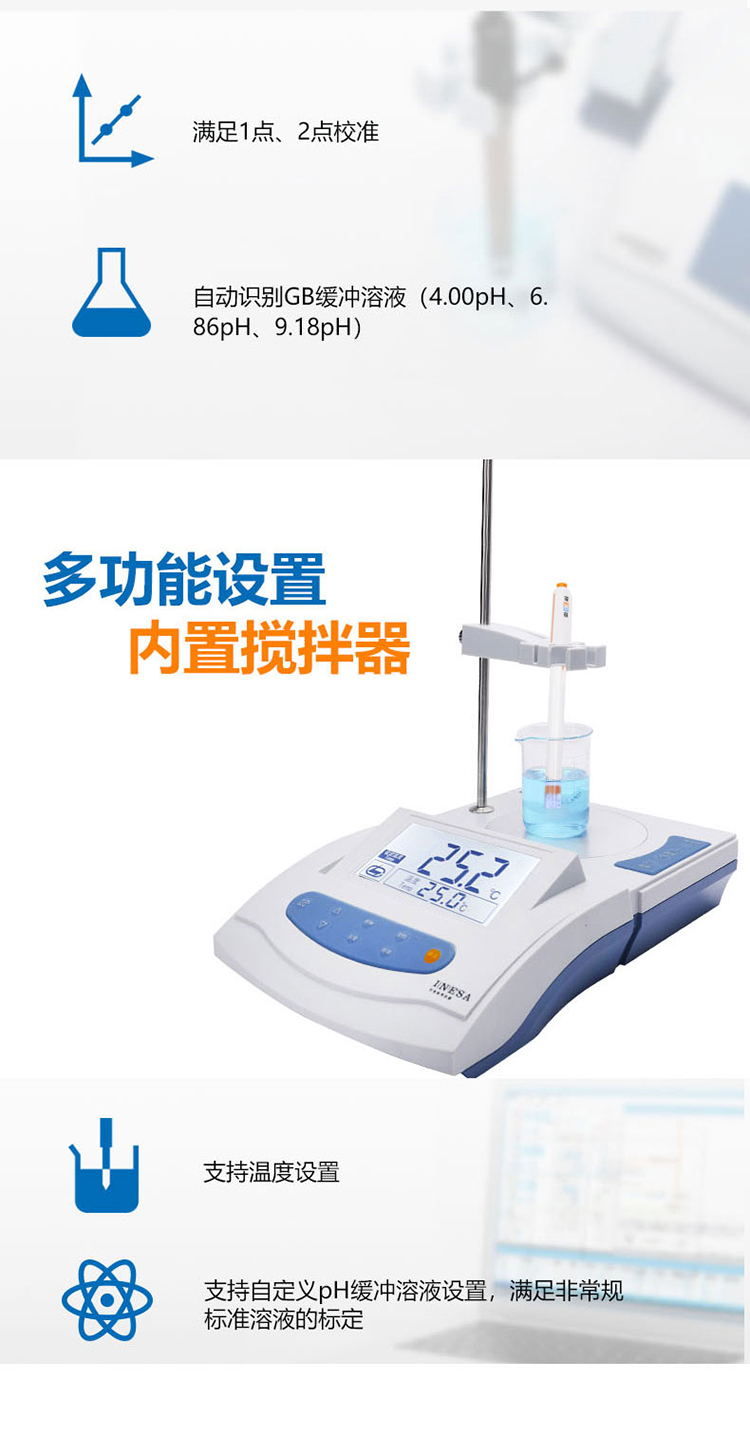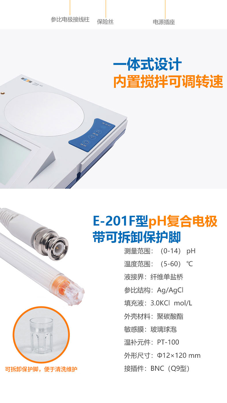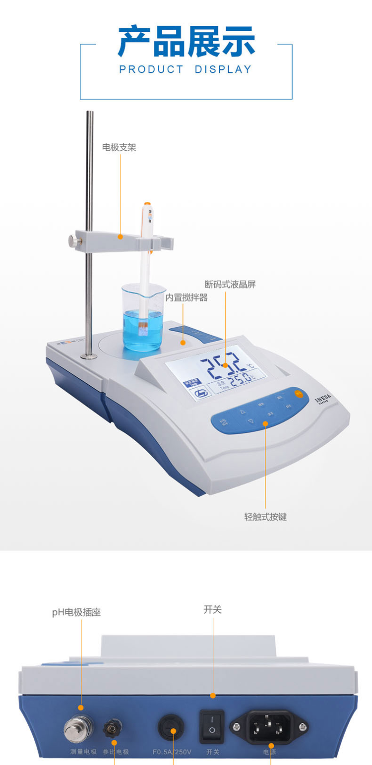雷磁PHS-3G型實驗室pH計標配帶攪拌功能手動溫度補償PH分析儀器