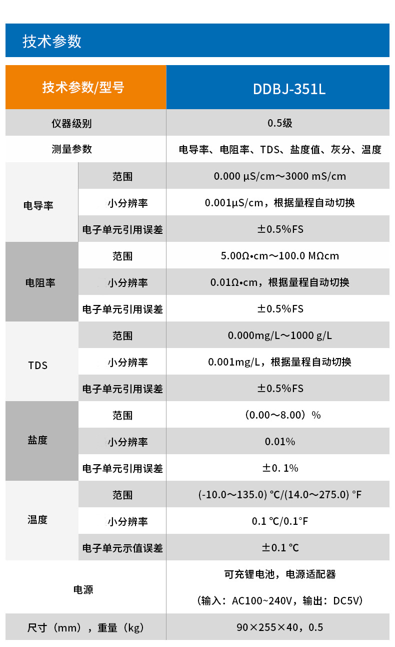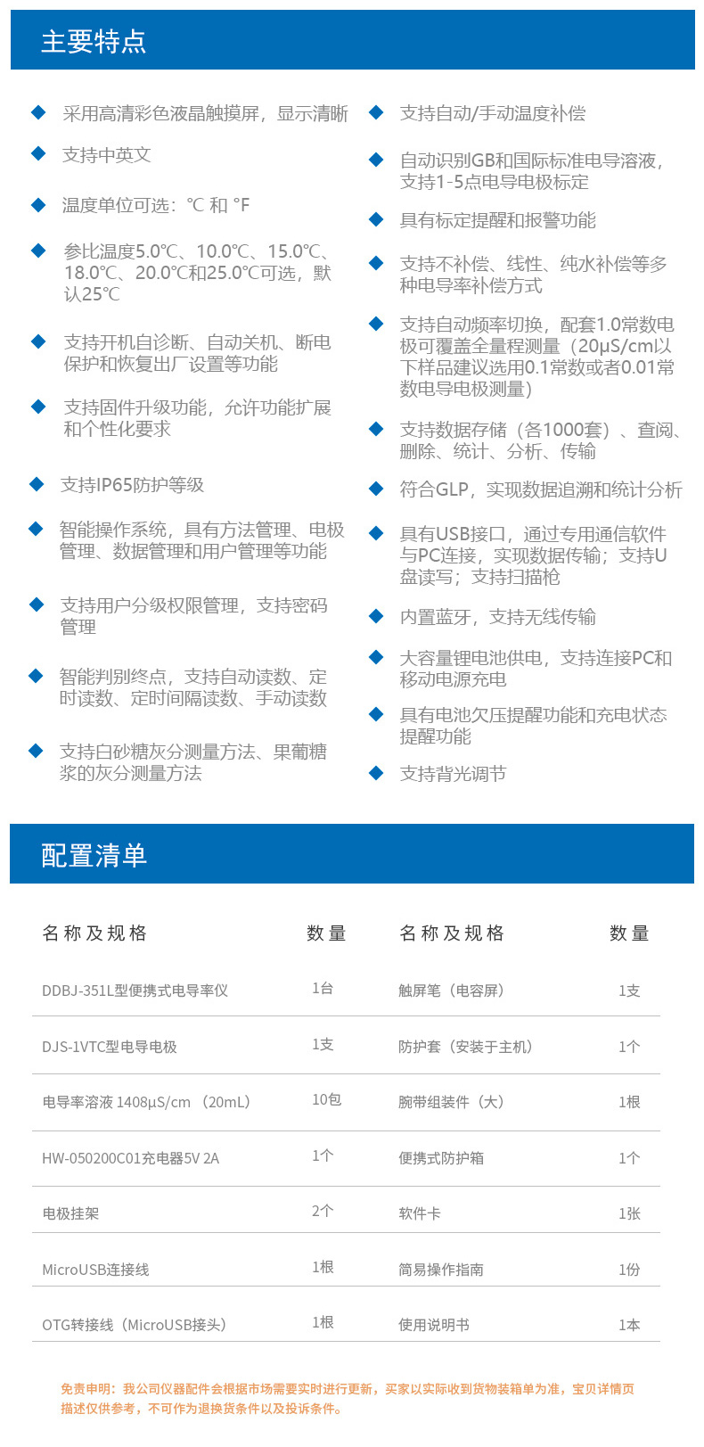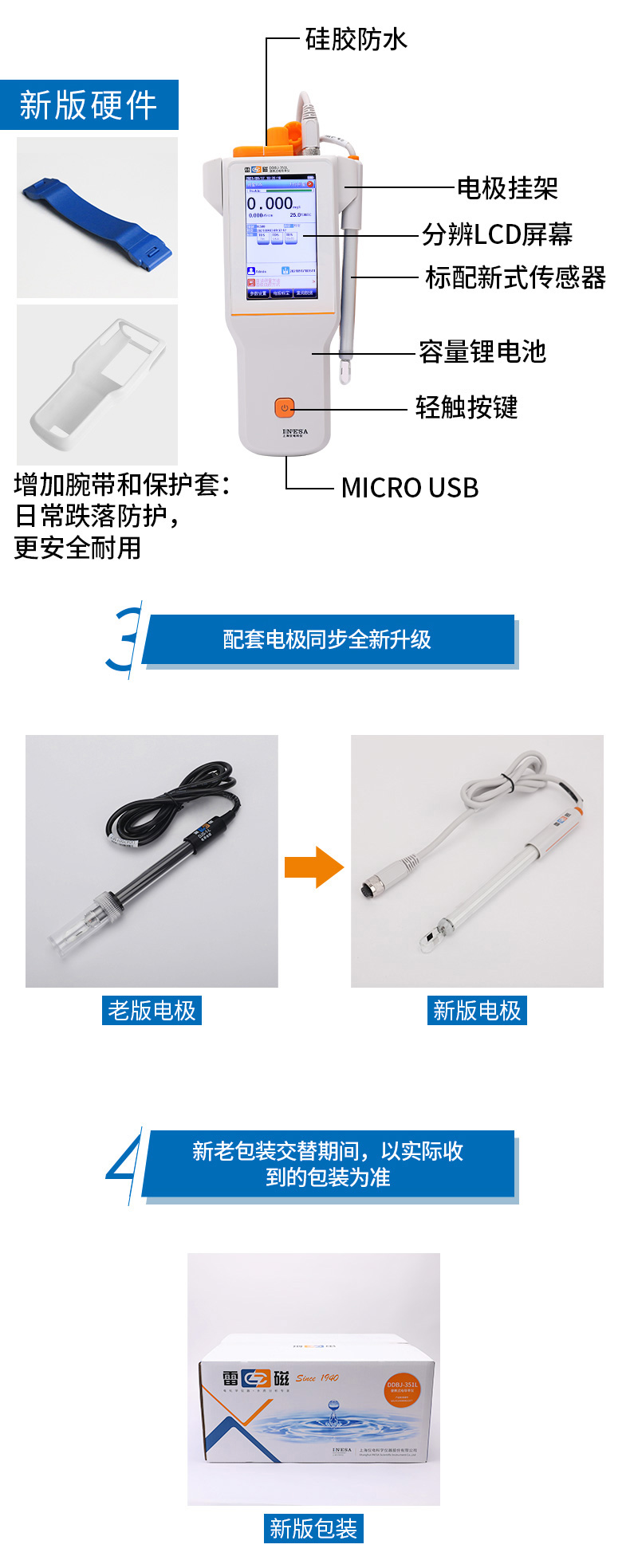 雷磁便攜式電導率儀DDBJ-351L 彩色液晶觸摸屏中英文測試儀