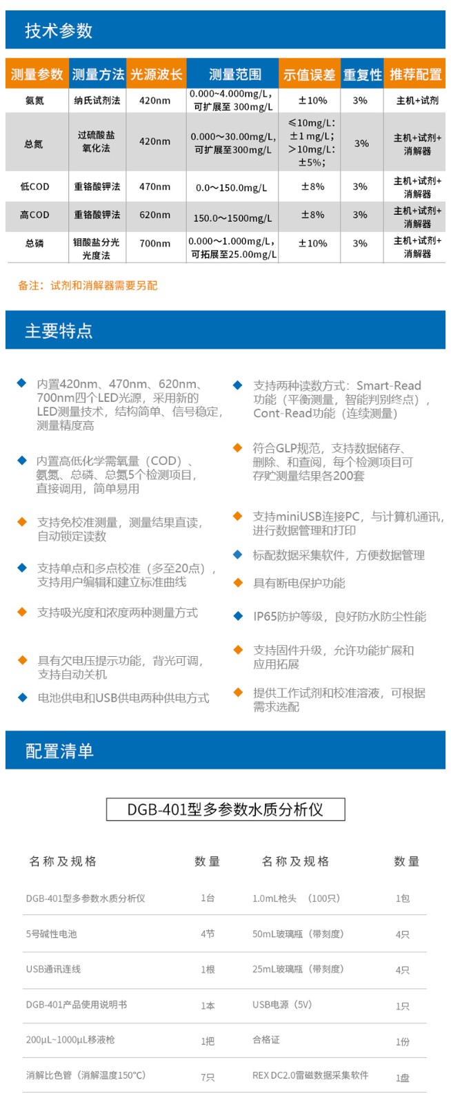 上海雷磁DGB-401多參數水質分析儀COD總氮總磷氨氮測定儀測試儀