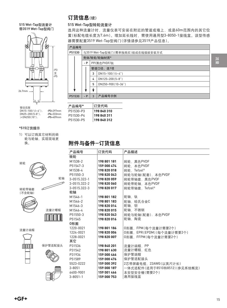 GF流量計515轉(zhuǎn)輪式流量計傳感器 純水流量測量儀器探頭