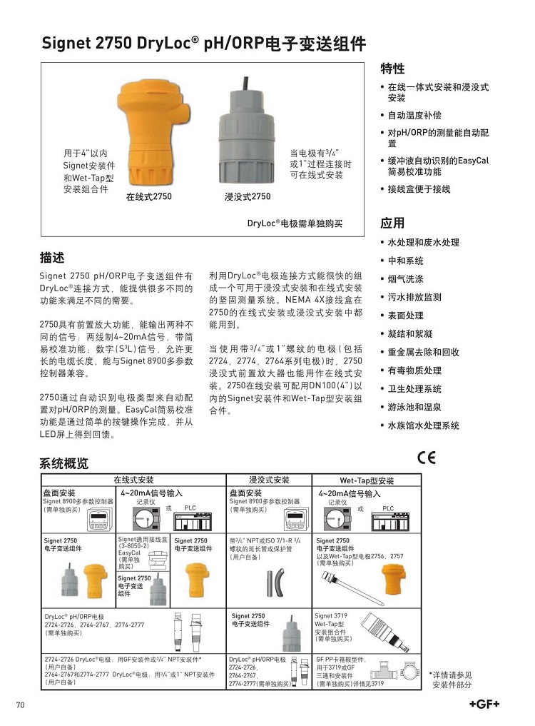 2750型配備了前置放大信號,且具有兩種不同輸出:兩線4-20mA回路輸出或數字 (S3L) 輸出,后者電纜可較長且與 8900 型多參數控制器兼容。