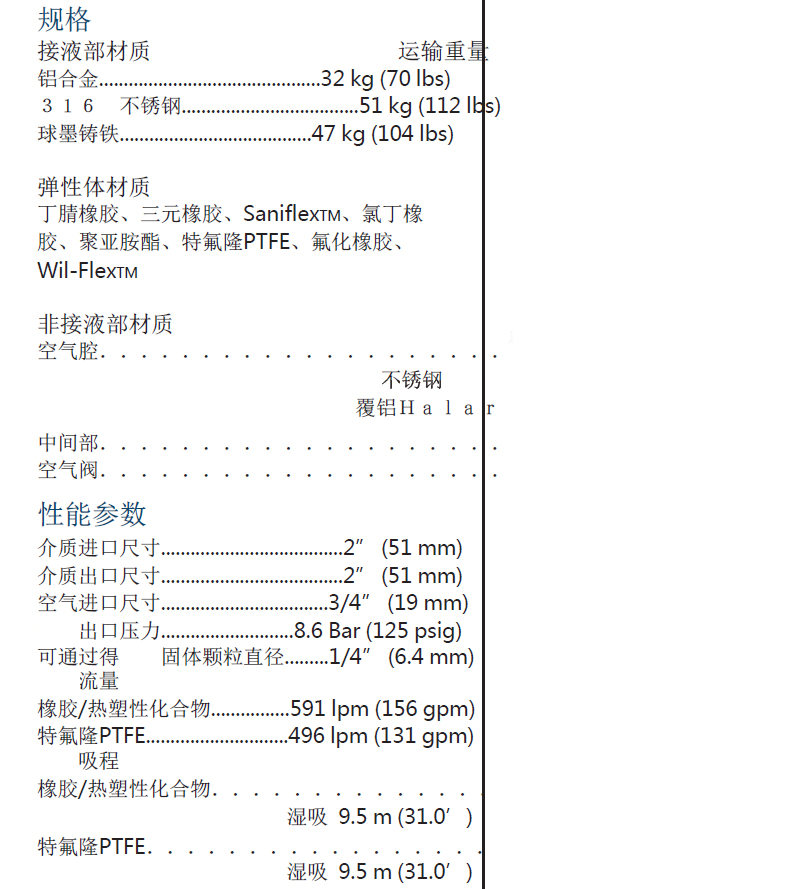 美國威爾頓氣動隔膜泵P100螺栓塑料泵說明書