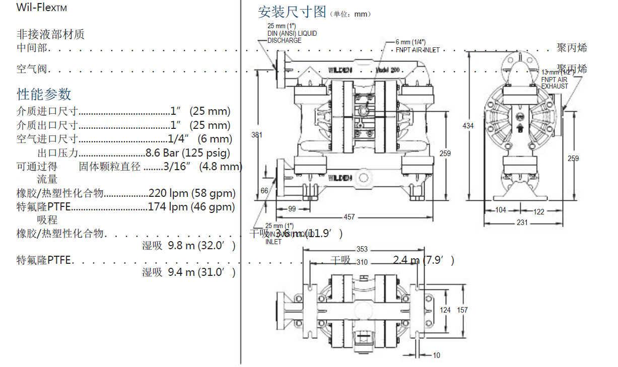 美國威爾頓氣動隔膜泵P200螺栓塑料泵說明書