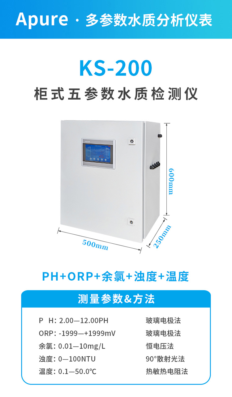 Apure多參數(shù)水質檢測儀KS-200型柜式五參數(shù)分析儀PHORP余氯測試儀