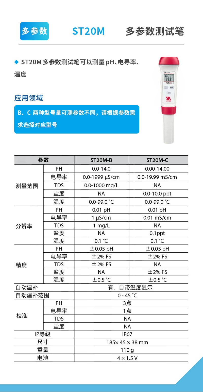 奧豪斯ST系列水質測試筆ST10便攜式多參數ph電導率溶解氧傳感器