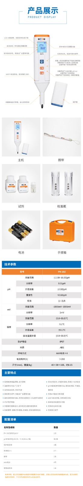 【雷磁】PH-30Z型筆式PH計(錐形型)