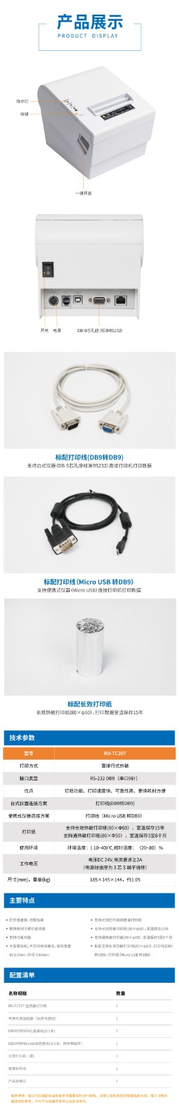 【雷磁】RD-TC307型直接行式熱敏打印機
