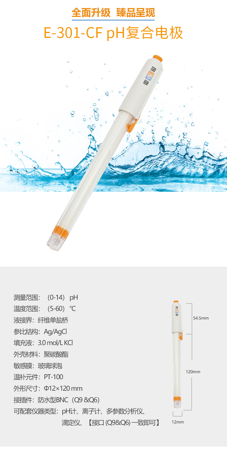 【雷磁】E-301-CF型pH三復合電極