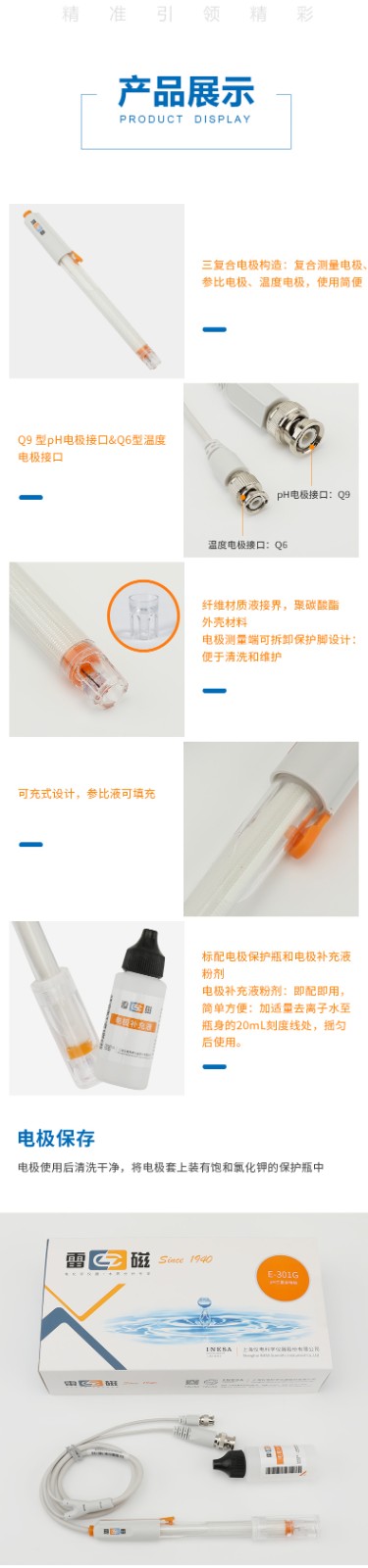 【雷磁】E-301G型pH三復合電極