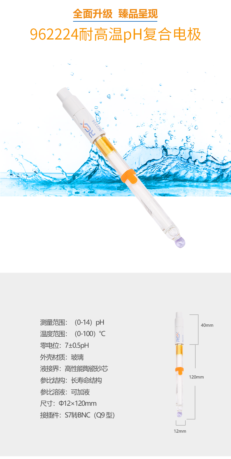 【雷磁】高端ph電極高精度 962224耐高溫ph復(fù)合電極