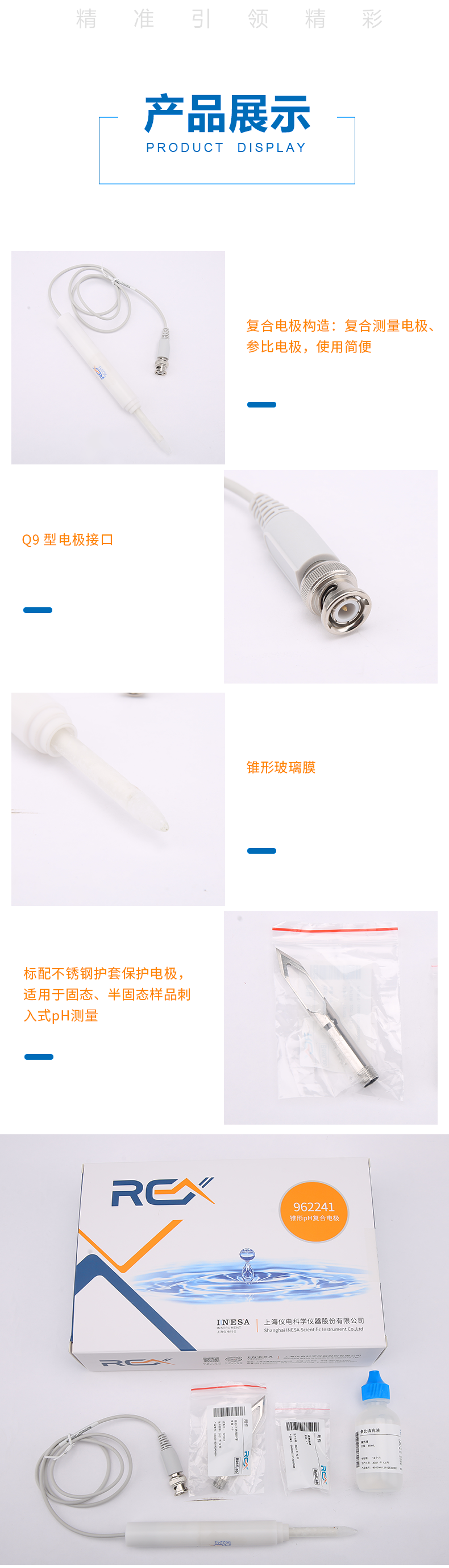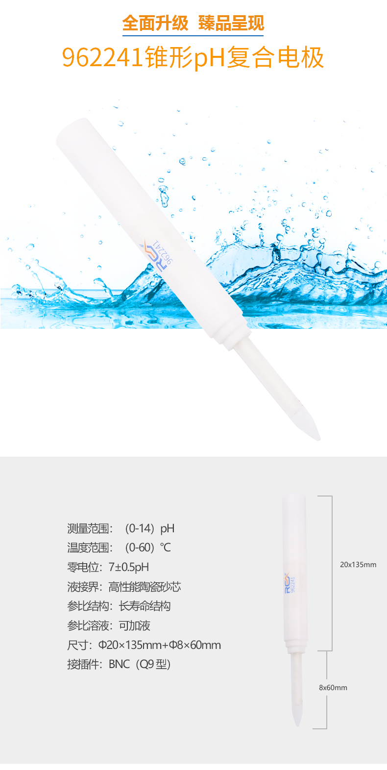 【雷磁】高端ph電極高精度 962241錐形ph復合電極