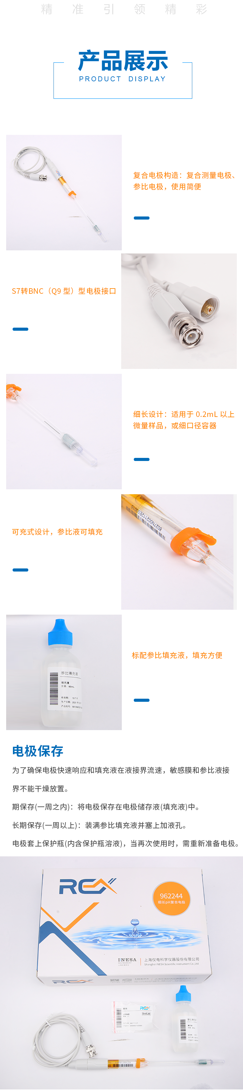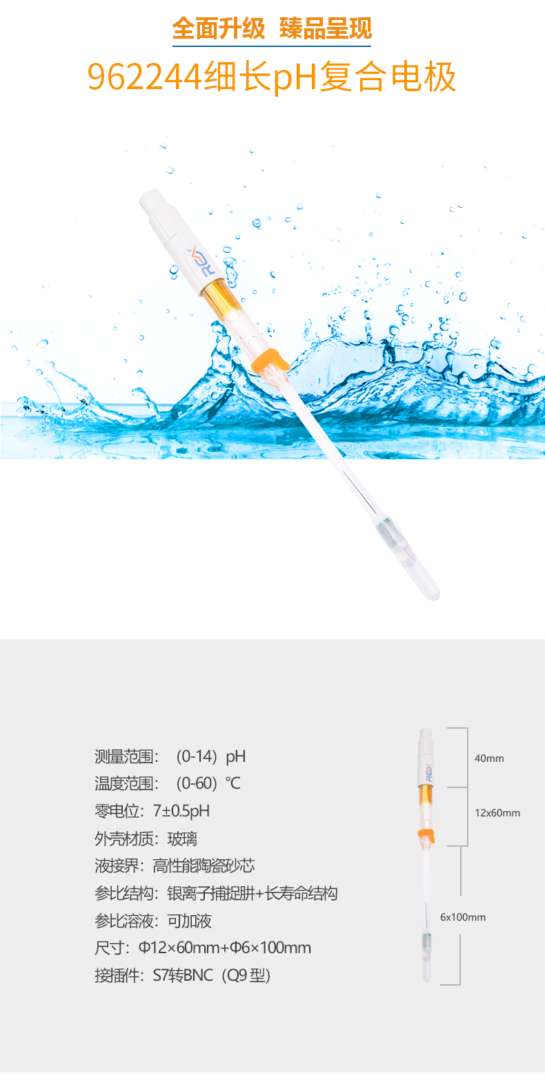 【雷磁】雷磁高端ph電極高精度 962244細(xì)長ph復(fù)合電極