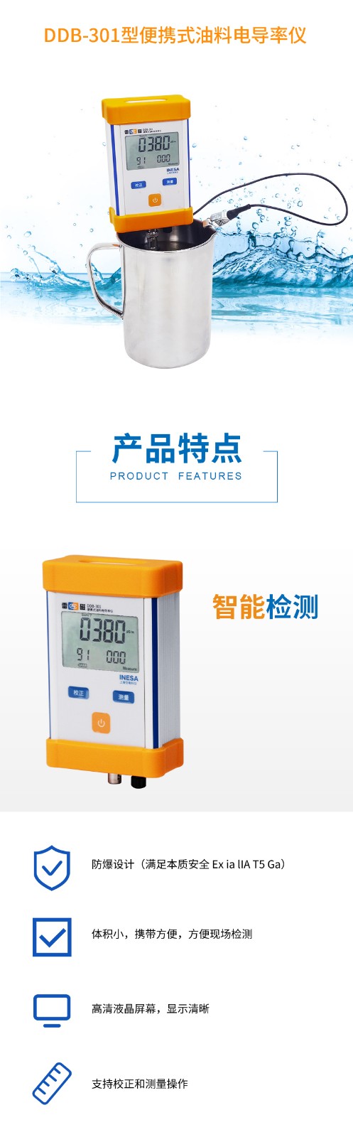 【雷磁】DDB-301型便攜式油料電導率儀航空燃料機油等電導率防爆