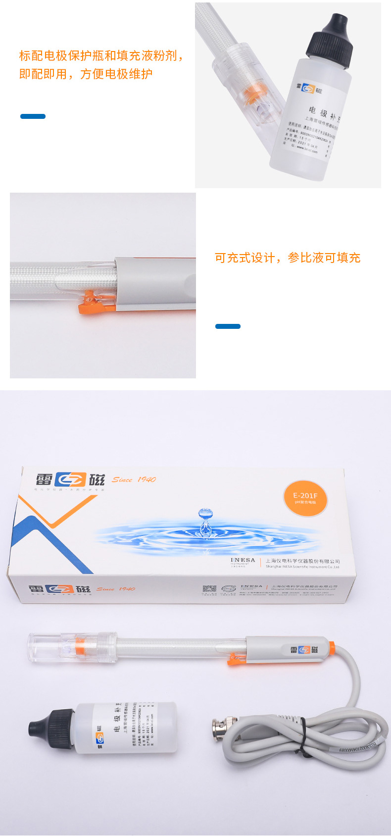 雷磁 E-201F 型 pH 電極傳感器 實(shí)驗(yàn)室便攜式復(fù)合電極 ph 檢測(cè)探頭