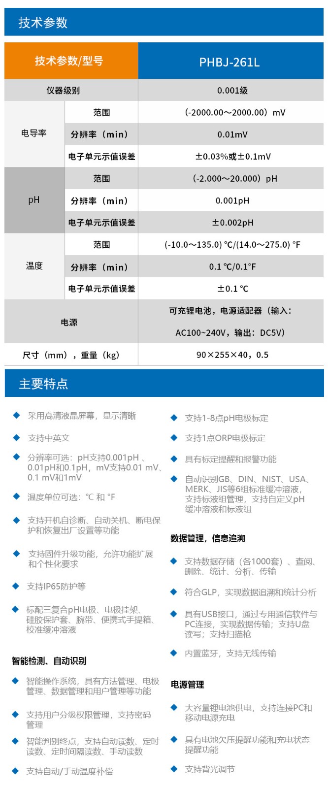 雷磁PHBJ系列便攜式pH計(jì) 260/260F/261L手持式數(shù)顯pH檢測儀