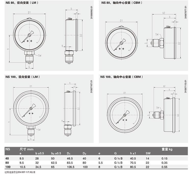 1.波登管壓力表EN837-1, 充油防震壓力表EN837-1,不銹鋼壓力表EN837-1,高精度壓力表EN837-1.防爆壓力表,機械壓力表: