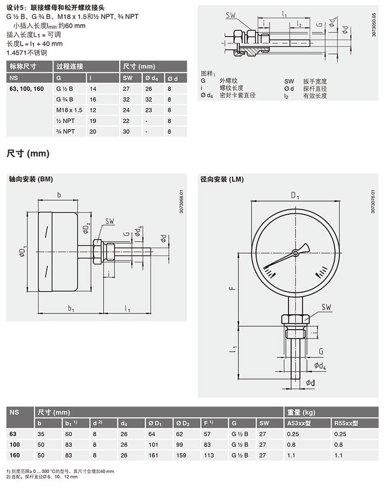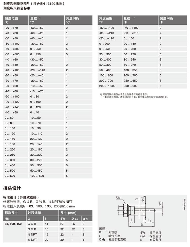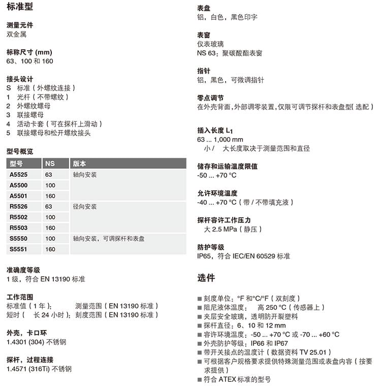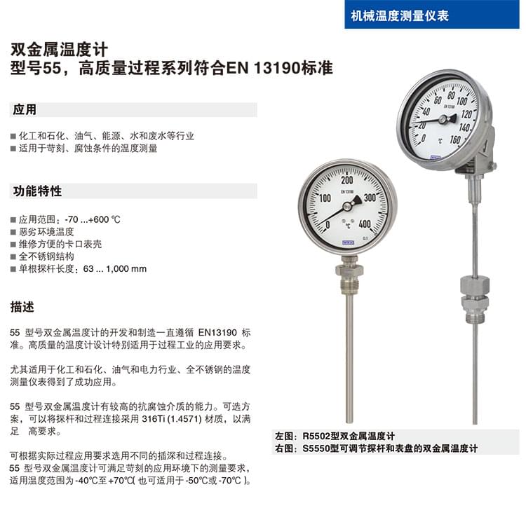 EN13190 全系列溫度計 A52 R52 徑向軸向雙金屬溫度計