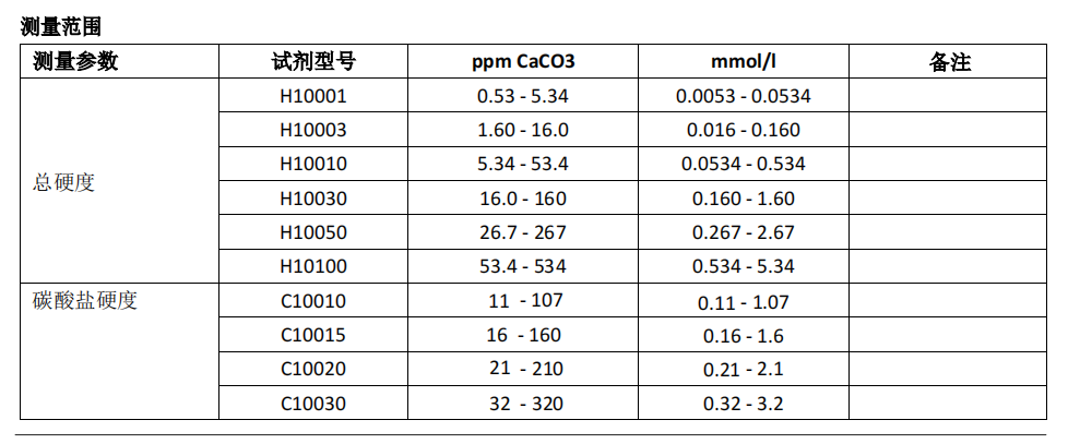 注意:試劑H10030及以上對(duì)溫度非常敏感,根據(jù)環(huán)境溫度校正測(cè)試結(jié)果可能是必要的。這些試劑為500ml瓶. 低硬