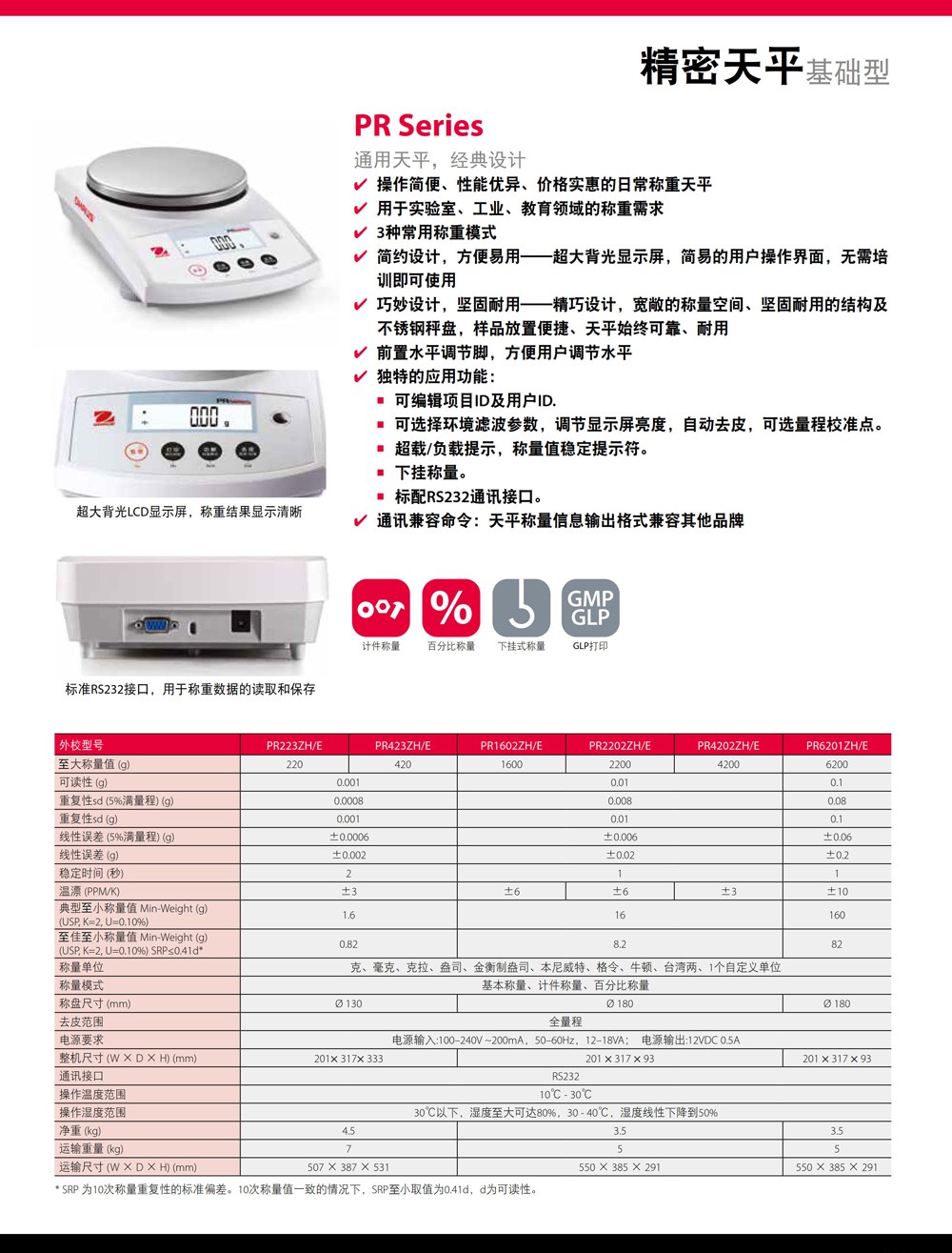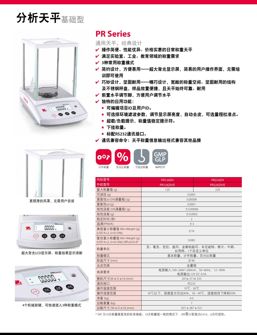 奧豪斯稱重天平PR系列分析天平實驗室基礎(chǔ)電子秤工業(yè)通用精密天平
