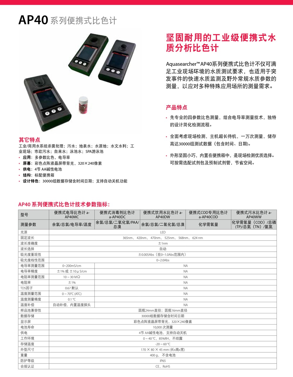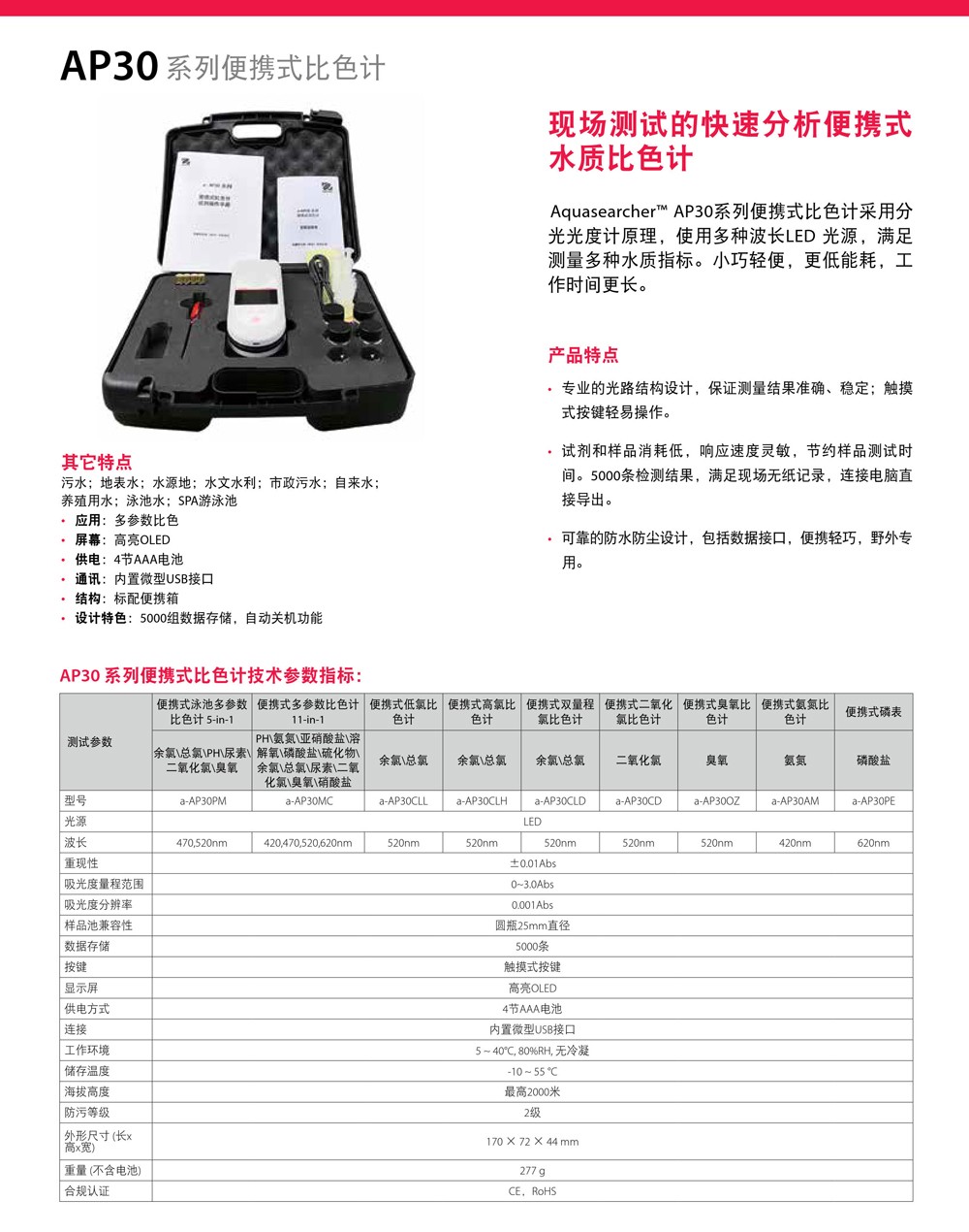 OHAUS奧豪斯AP30/AP40系列便攜式工業分析比色計多參數水質分析儀